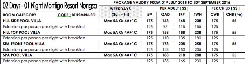 PEAK PERIOD (refer weekend rates): 17Jul, 09Aug, 24Sep**, 10Nov**, 25Dec’15, 01Jan, 08Feb & 09Feb, 25Mar’16 **subject to change