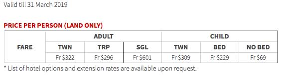 From $322 SGD – 4 day free & easy package